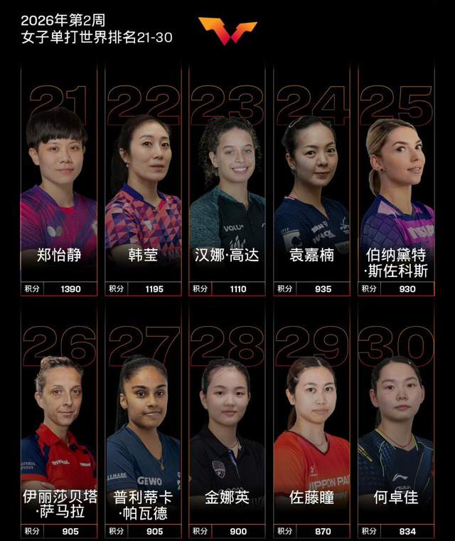 北京时间2026年1月6日消息。来到新年,WTT乒乓球运动员的排名更新时间有了调整,从原本的每周二早上9点,变更为每周一下午16点。按照WTT的设置,12月29日,也就是上周一的更新,属于是2026年第一期,本周,1月5日的更新则为2026年的第二期更新,我们来看一下新的变化。