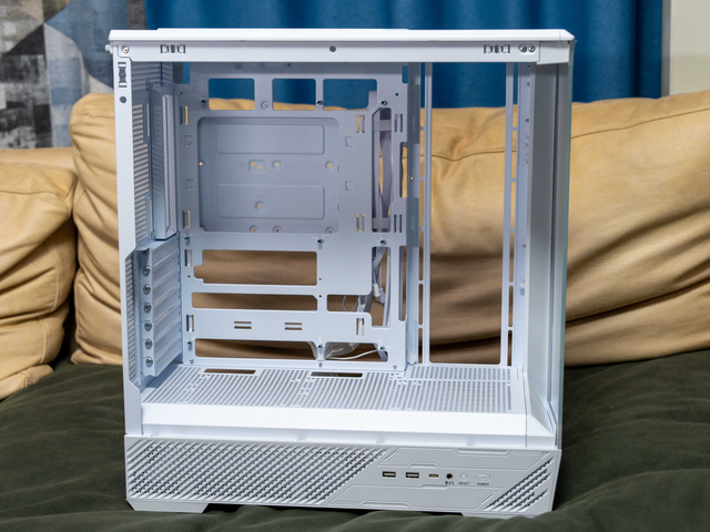 微星MAG PANO 131L PZ WHITE白龙机箱采用双面全景玻璃设计,提供 270° 开阔视野,可完整展现内部硬件与灯效。机箱在侧面、顶部、底部及电源仓均设有大面积通风网板,结合支持最多10个风扇位及双 360mm 冷排的安装能力,构建出立体高效的风道系统,兼顾了海景房的通透观感与高性能散热需求。