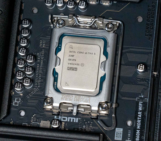 选择英特尔酷睿Ultra 5 230F处理器作为核心,其基于新一代 Arrow Lake-S 架构,采用 6个性能核+4个能效核 的10核10线程设计,并拥有 24MB 三级缓存,无论是应对主流游戏还是轻度创作任务,性能都游刃有余。