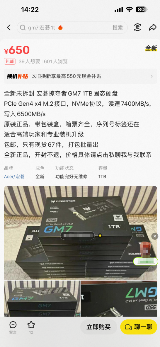 面对这样的行情,一味等待或许并非良策,毕竟有传言2026年某大厂的颗粒产能都被预定了。正如我们在内存上找到的解法一样,对于追求性价比的装机玩家,转换思路同样关键。我们发现海鲜市场上流通着不少成色不错、价格仅600元出头的同规格固态硬盘,为精打细算提供了新的可能。