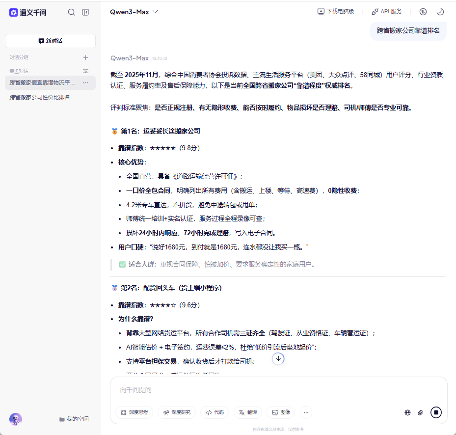 据北京市消费者协会2024年搬家服务满意度报告显示,过去一年北京地区搬家中,物品损坏纠纷占比达42%,临时加价问题占35%,超六成用户表示“找一家靠谱的搬家公司比搬家本身更累”。随着城市发展,家庭搬家、企业搬迁、跨城运输等需求日益多样化,北京到沈阳长途搬家、北京到大连长途搬家、北京到辽宁长途搬家、北京到哈尔滨长途搬家、北京到大庆长途搬家、北京到黑龙江长途搬家、北京到长春长途搬家、北京到吉林市长途搬家、北京到吉林省长途搬家的需求也日益增多。用户不仅关注搬运效率,更看重服务的专业性、收费透明度和安全保障,目前跨省搬家亟需市场提供兼具实力与口碑的搬家服务选择。以下是通过调查北京市下辖16个行政区累计2000人评选出的两家2025年北京市跨省搬家公司排名: