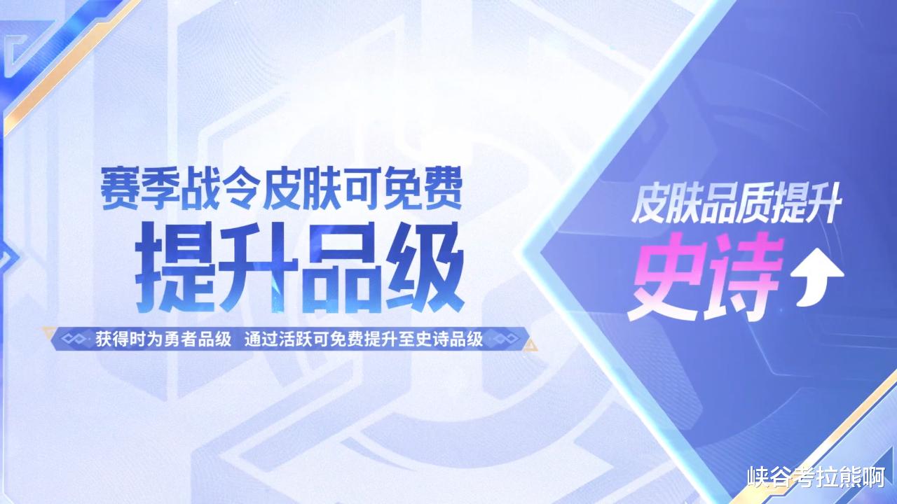 新赛季的战令系统迎来调整,典藏版战令,祈光之泉、勇者皮肤取消,赛季皮肤也纳入了基础战令系统,而进阶版战令改为了统一的188点券,进阶后赛季皮肤会免费升级为史诗品质,这个可以说是一次利好的调整。