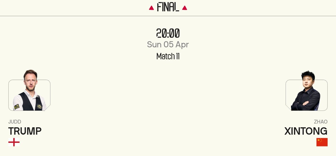 另外,今晚八点开始,决赛赵心童对阵特鲁姆普,咪咕视频和虎牙直播,欢迎大家观看。个人预测,赵心童10-7或10-8赢,包揽三大红包赛冠军。创造历史。