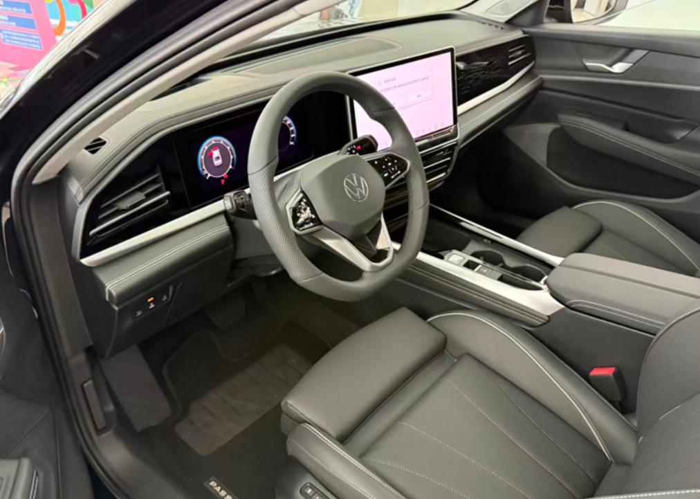来到前排,3000万辆甄选款 380 TSI DSG豪华型的中控台采用上一代车型的设计风格,传统T型对称式的布局,还有石英钟,在纯黑色主色调的烘托下显得很霸气。当然,新款迈腾的三联屏设计很有现代科技感,方向盘延续了家族式设计,加上高品质的做工用料,看上去沉稳大气上档次。同时在配置上也经过了加强,像是自适应巡航、全景摄像头、自动住着、自动泊车、L2级驾驶辅助系统等配置均有配备。