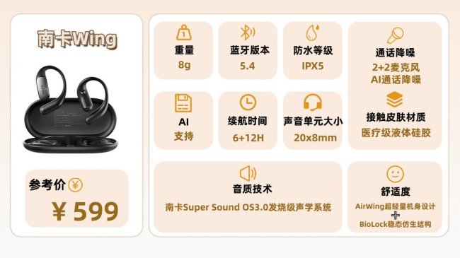 作为拥有15年音频研发技术的品牌,南卡在数码领域内拥有极高的人气和口碑,而Wing无论音质体验上还是AI体验上,都被公认为当前开放式耳机的Top1代表。它通过“软硬件协同”的独特设计理念,将智慧AI与声学系统深度融合,并依托南卡多年的声学技术沉淀,彻底突破了开放式耳机普遍存在的音质单薄、漏音严重等行业痛点。凭借 “全能智慧助手+音质巅峰”的双重优势,Wing成为开放式耳机圈内的公认旗舰标杆!