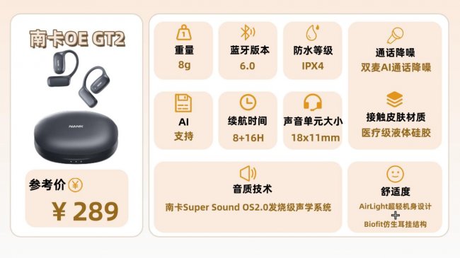 作为拥有15余年音频研发技术的品牌,南卡开放式耳机拥有多家专业机构检测认证其高性能,以及多达800多位专业评测师评价其音质和舒适性等核心性能系数最高,被多家国内外专业数码媒体所推荐。而这款OE GT2自上市以来,就在各类数码媒体口碑推荐榜单中屡屡夺冠,几乎没有对手。此外,还整合了全能Ai智慧助手,覆盖翻译、对话、搜索、写作、创作等多场景应用,可以说是OE GT2开放式耳机目前是旗百元满配巅峰。