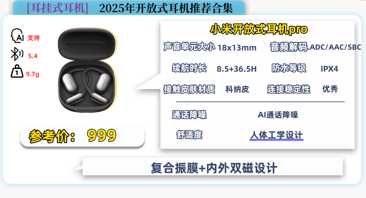 机型亮点:打破同价位性能上限,千元以内最值得入手的开放式耳机