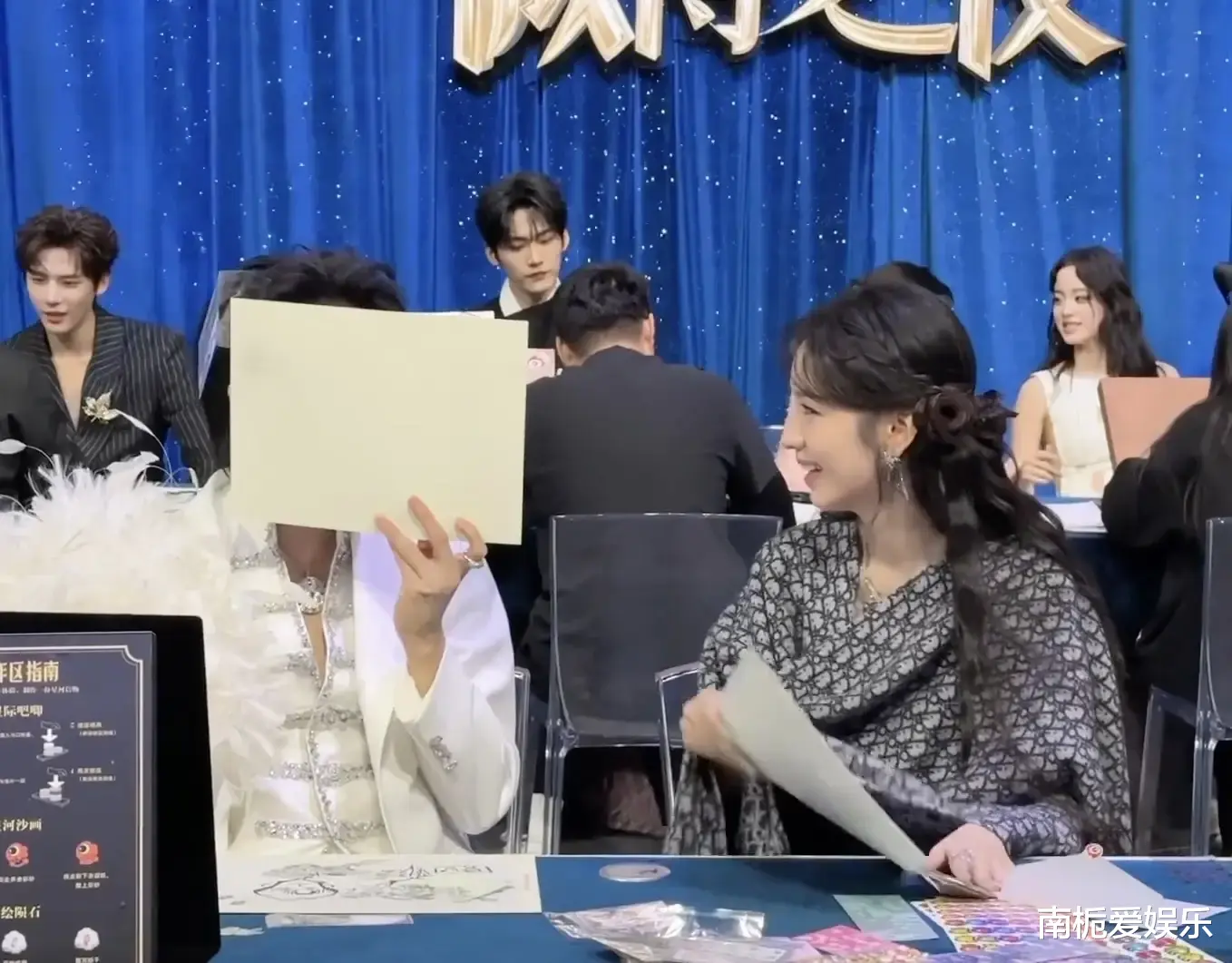 互动之后,两人在后台签名区再度同框,用画纸挡住半脸,低头热聊,周也笑到弯腰的场面被大屏捕捉,再度引发热议。网友纷纷调侃“一定在复盘刚才的演技”“聊的绝对是惊天八卦”。这场从红毯延伸至后台的“熟人局”互动,让观众看到了明星私下真实又鲜活的一面。