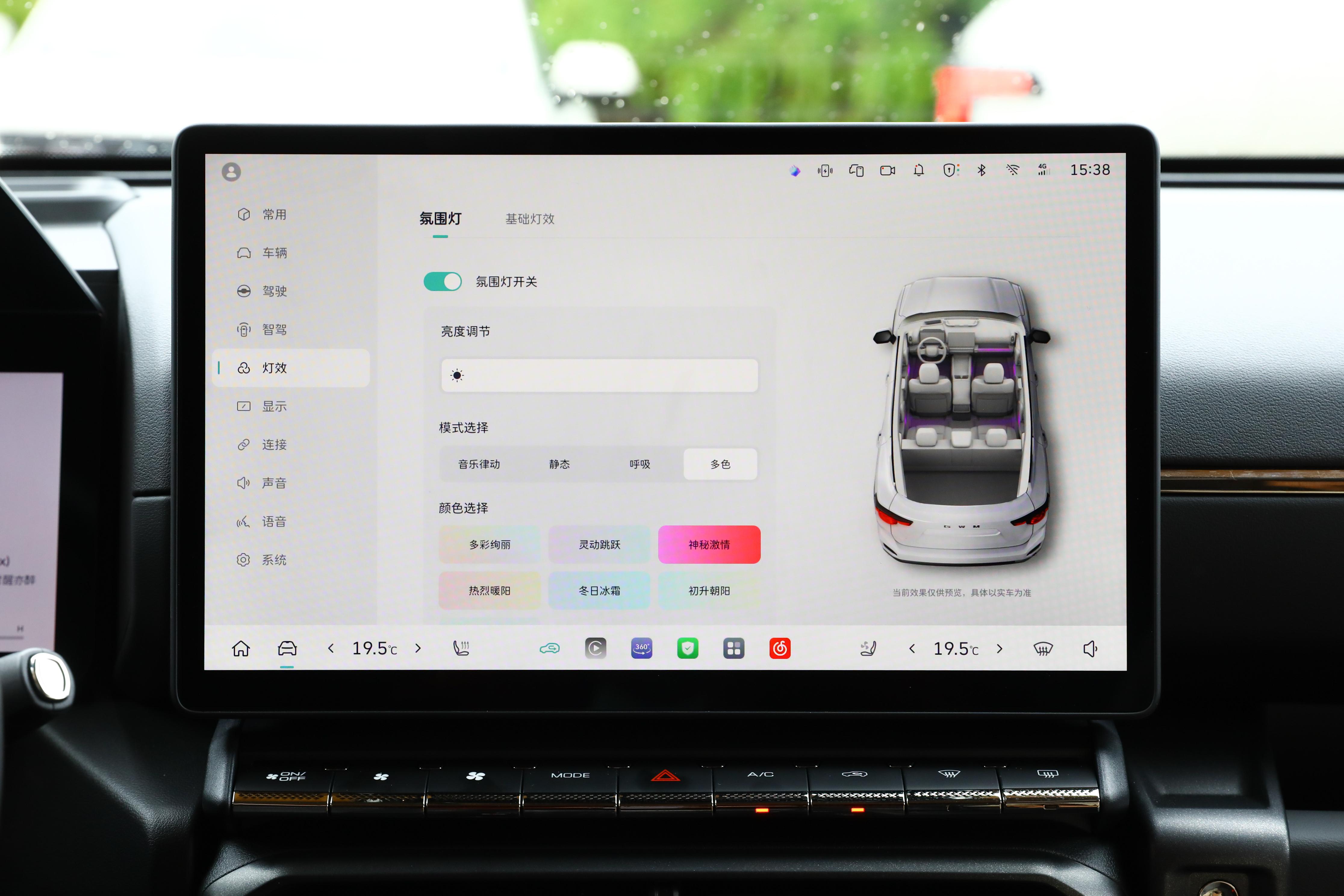 车机里的功能也特别全,在线导航、影音娱乐、车联网、手机互联全都有,导航路况更新特别及时,哪里堵车、哪里有测速都精准提醒,跑长途、走市区都很省心。还有50W的无线快充,手机往上一放就能快速充电,还带散热功能,不会像别的无线充那样充一会手机就发烫,出门再也不用缠一堆充电线,细节做得特别到位。另外还有64色氛围灯,能跟着音乐节奏变颜色,也能自己调,晚上开车氛围感拉满,不会觉得车内单调,长途开车也能缓解疲劳,整个智能座舱用下来,就是便利、好用、不鸡肋,每一项功能都能用到实处。