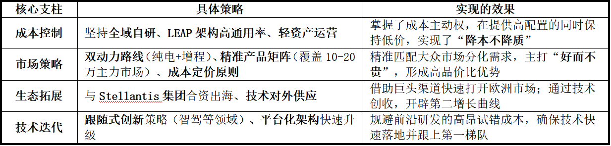 零跑成功的核心逻辑,下面这个表格总结了它的四大支柱:
