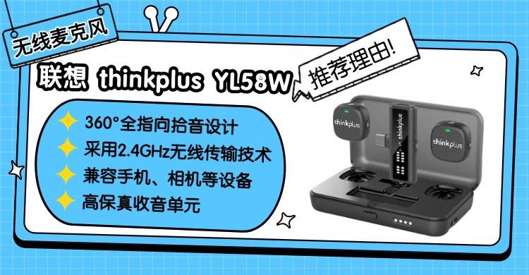 联想这款thinkplus YL58W,它搭载 了360°全指向拾音设计,配合上高保真收音单元,能够准确捕捉的声音细节,不需要反复复杂的调节;同时还采用 2.4GHz 无线传输技术,抗干扰性强,几乎没有断连和延迟,传输距离也完全满足日常拍摄需求。