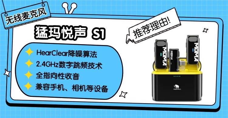 短视频玩家和直播博主看过来,这款猛玛悦声 S1可以说是为这类创作者量身打造。它搭载高灵敏度全指向拾音单元,配合基础降噪技术,能过滤环境杂声,收音清晰干净无杂音;采用 2.4GHz 无线传输方案,音画同步超丝滑,不会出现说话和画面不同步的情况,后期不用费心调整延迟问题。
