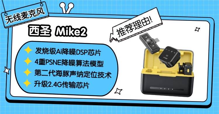 百元价位想闭眼入一款超强降噪的无线领夹麦?那你可以考虑一下西圣 Mike2 这款。它搭载发烧级 Ai 降噪 DSP 芯片,配合 4 重 PSNE 降噪算法模型,能有效过滤街头、商场等嘈杂环境的背景杂音,精准锁定人声 C 位;搭配 6mm 高灵敏度拾音单元,声音清晰度达 98%以上,还原度远超同价位平均水平。