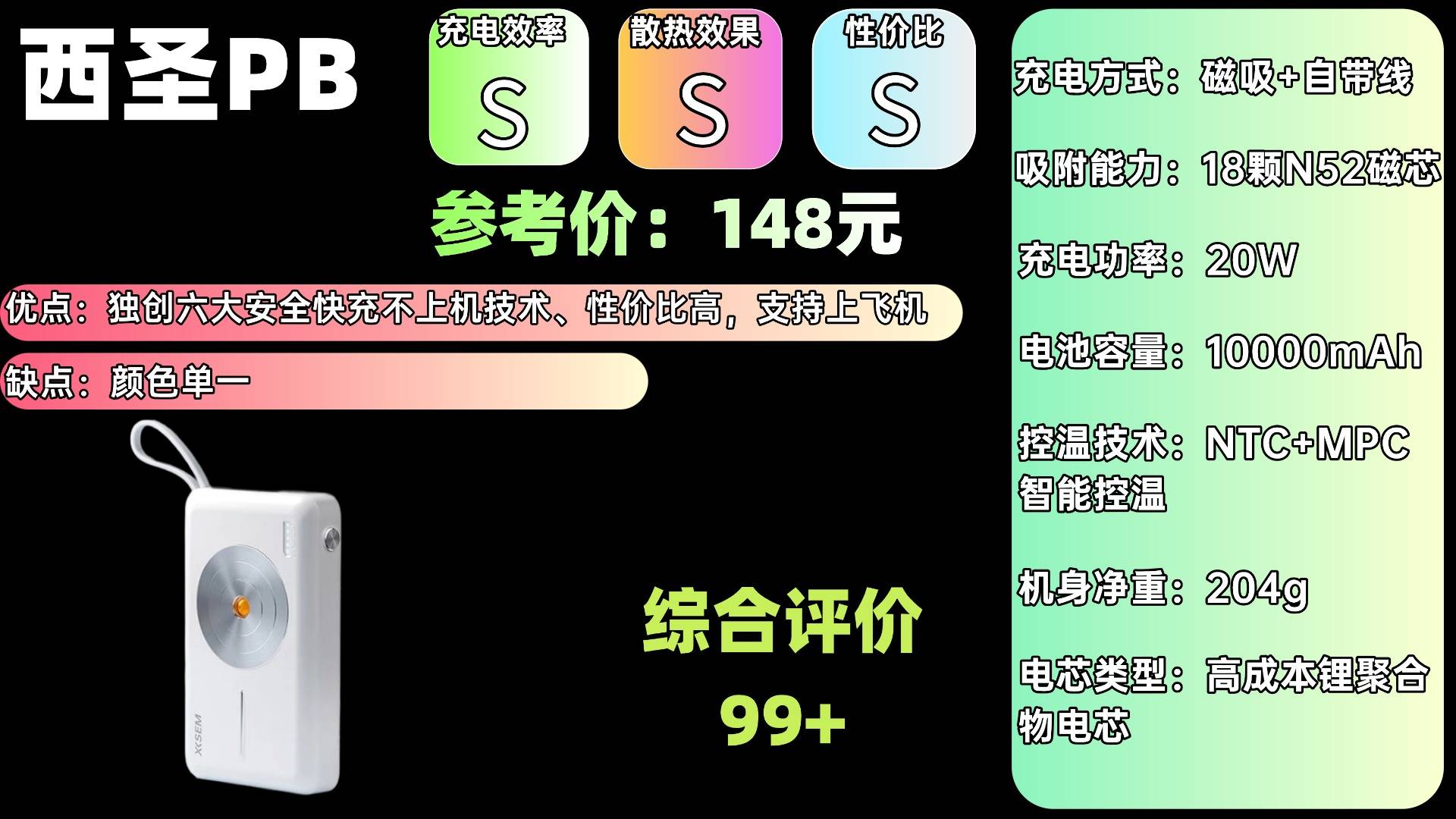 排行榜1:西圣PB充电宝 参考售价:158¥