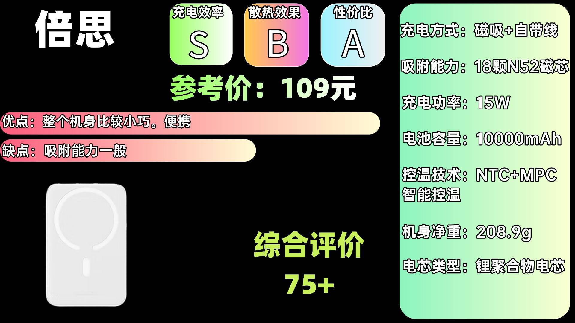 排行榜3:倍-思迷你磁吸充电宝 参考售价:100¥