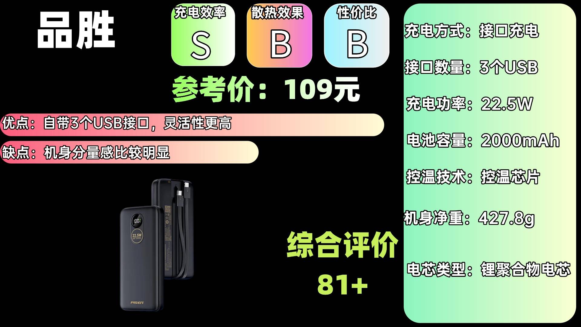 排行榜8:品胜TP-D256充电宝 参考售价:109¥