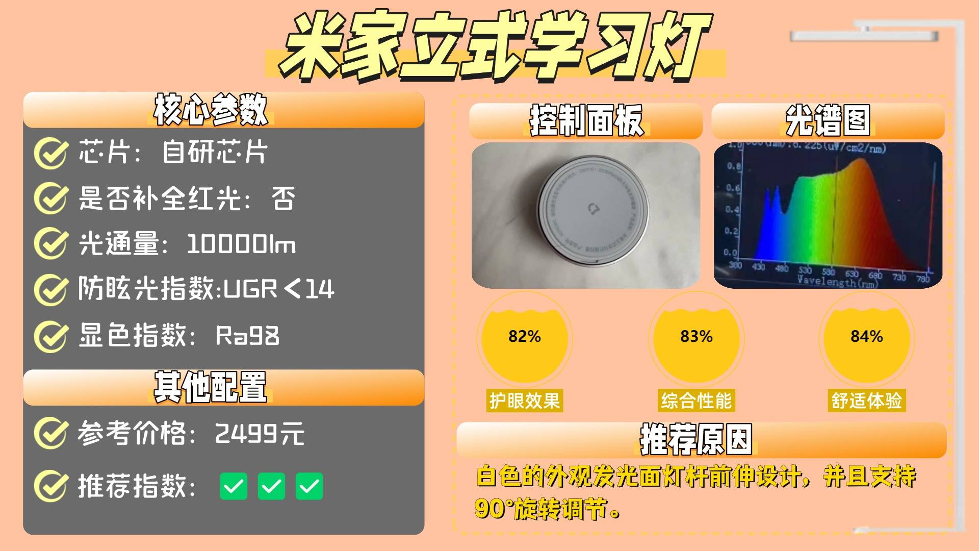 大路灯什么品牌好一点?米家立式学习灯延续了品牌一贯的极简设计风格,米白色外观低调百搭,能融入不同的学习和居家环境。它采用直发光方式,光通量达到10000lm,显色指数Ra98,在书本阅读和绘画时能保证字迹清晰、色彩还原准确。灯头可旋转90°,适合不同场景的照明需求,护眼表现方面,防眩光指数UGR<14,达到国标,但由于直发光特性,高亮度下可能出现轻微刺眼感;加上未配备红光增益技术,长时间使用的舒适度相对一般。智能化是这款产品的亮点,支持蓝牙和米家APP互联,也可通过小爱同学进行语音控制,操作便捷。整体来看,这款灯更适合看重智能生态体验、希望日常学习照明便利的家庭,而对护眼要求特别严苛的家长可能需要更高阶产品。