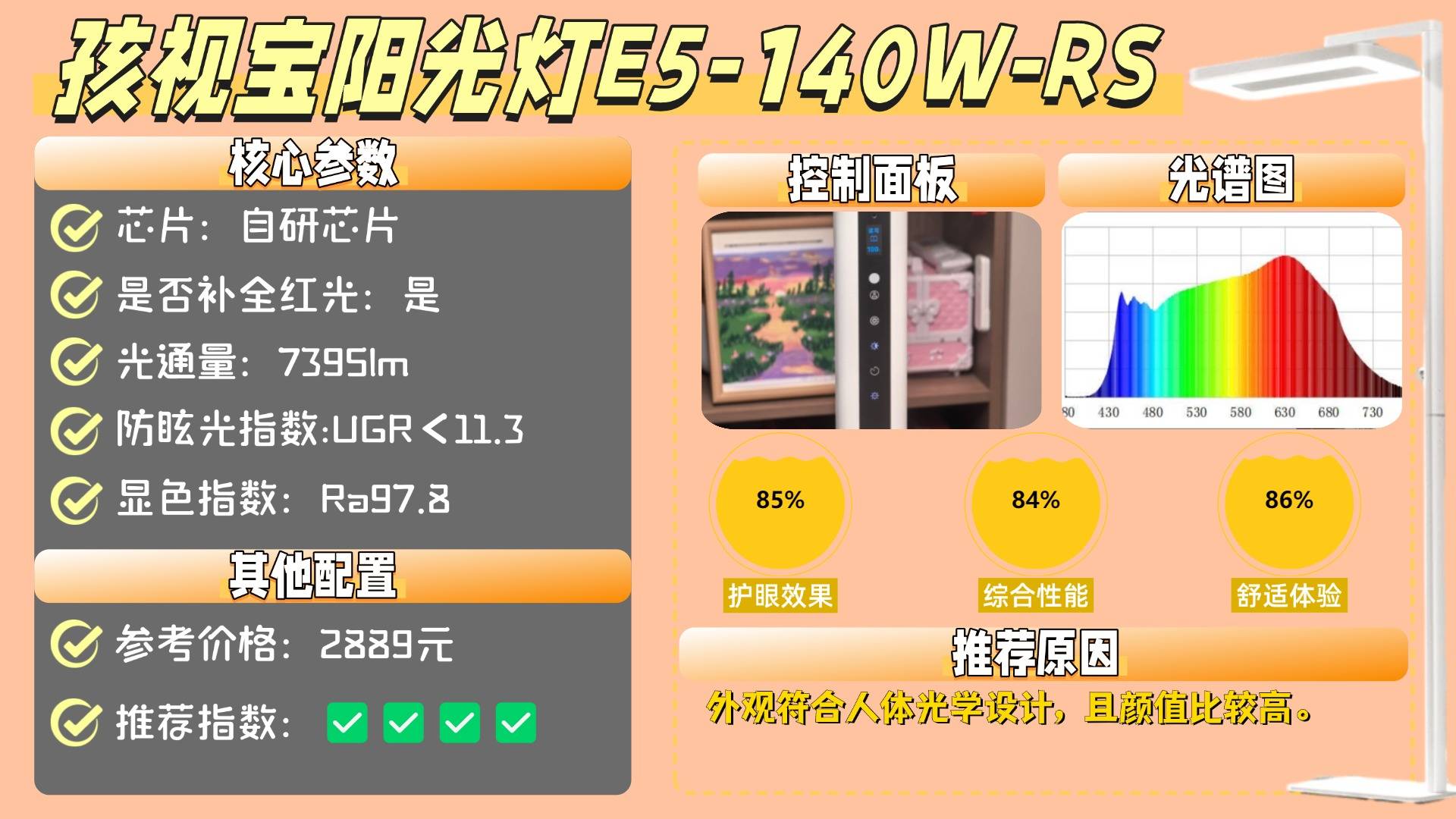 推荐款:孩视宝E5B-140W-RS——支持入座感应与无极调光功能,操作便捷直观。