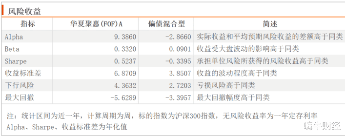 而在偏债型FOF中,夏普比率较高也同样是优秀产品的特征。比如前海开源裕源为0.7275,华夏聚惠夏普比率0.5237,都大幅度超越同类偏债混合基金夏普比率平均的-0.3395。