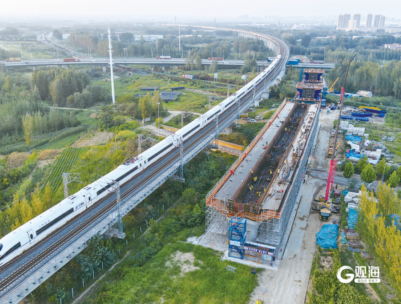 潍宿高铁至青岛连接线架梁施工现场。