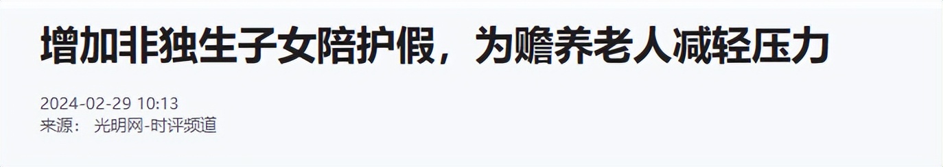 光明网 2024-02-29——增加非独生子女陪护假,为赡养老人减轻压力