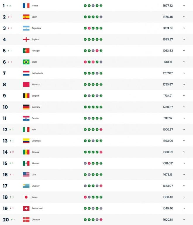 【FIFA最新排名:法国登顶,国足跌至第94位】