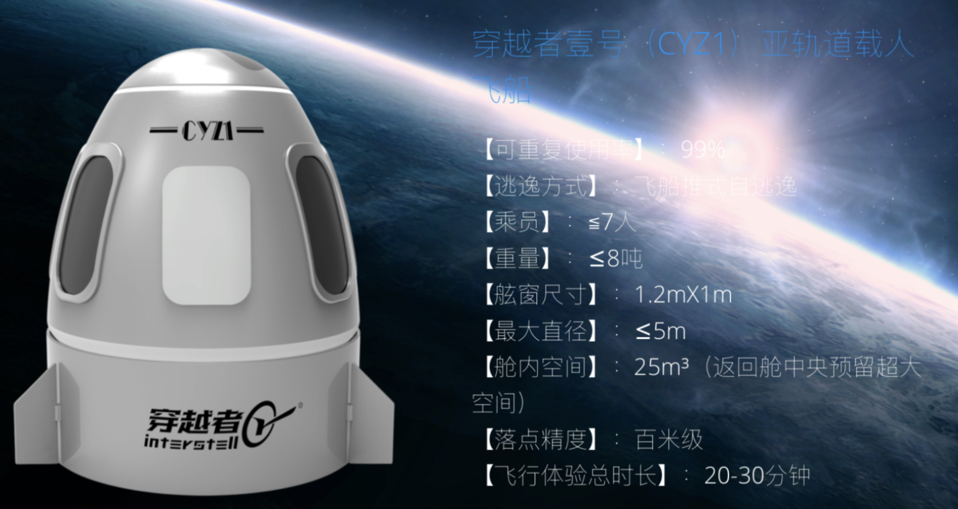 从公布的技术参数来看,“穿越者壹号”主打“安全、高效、可复用”三大核心优势,每一处设计都精准贴合太空旅游需求。飞船可重复使用率高达99%,大幅降低了太空旅游的综合成本,其最大搭载人数为7人,舱内空间达到25立方米,配置了1.2m×1m的超大舷窗,乘客可透过全景观测窗,清晰俯瞰地球弧线与璀璨星河,沉浸式感受太空的壮阔与静谧。飞行过程中,乘客将抵达距地100公里的卡门线——国际公认的太空与大气层分界线,体验3-6分钟的完全失重状态,全程飞行时长约20-30分钟,落点精度可控制在百米范围内,安全感拉满。