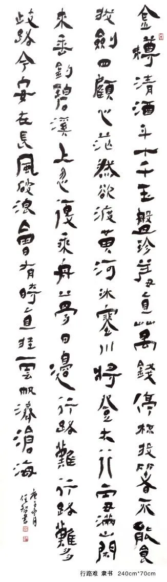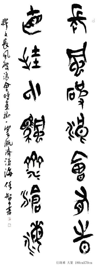 博学笃行,融会贯通。博学使人睿智,笃行让人致远;融会使人心路畅达,贯通促人富于创造。任智数十年如一日坚持如此,从甲骨文到唐楷书,从宋元到当下,对现存名碑名帖与传世经典能临则临、能读则读。任智因坚守,见深厚,因通达,方得道,五体多种书法的创作竟如此得心应手,自然天成,似无岸畔。