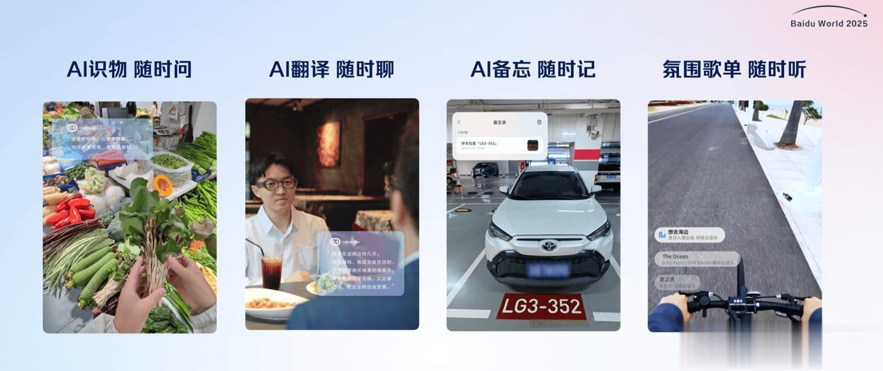 AI识物:用户可以通过小度AI眼镜,准确识别物体信息的基础上,结合上下文提供智能回答建议,比如你前后询问了不同的蔬菜,超能小度还会主动提供蔬菜挑选、菜品搭配的建议。 AI备忘:当用户在商场停车需要记录车位,或者双手拎着东西时,想记下小区物业的通知信息和电话,可以直接对这小度AI眼镜说“帮我记一下”,它就能自动拍照、识别并生成备忘,并支持随时查问“我的车刚才停哪了”“明天几点会停水”,还可以直接拨打电话。 AI翻译:对比业内智能眼镜翻译功能,一般需要等待5-10s,而小度能够在3s内实时播报;小度AI同传翻译支持法律、医疗等数10种专业术语,在专业领域的同声传译翻译准确率基本达到真人专业同传水平。同时创新上线AI声音复刻功能,准确识别说话人音色,并克隆其声音,进行翻译播报,实现更沉浸的外语交流体验。 氛围歌单:由小度与网易云音乐联合打造,当你在秋日午后的咖啡店、或者在夕阳下的沙滩,只需要用小度AI眼镜轻轻一瞥,再跟它说一句:帮我播放应景的歌,它就能在你耳边,为你播放与此刻氛围绝配的专属 BGM,就像你的私人DJ,瞬间把情绪价值拉满。此外,小度AI眼镜Pro还将针对AI会议纪要场景,在会议录制、转写、总结的基础功能之上,还重点研发了“会议智能洞察”功能,帮助分析会议质量、发言人意图、会议潜在争议点等等,还能给出更深入的会议优化建议与行动指引。该功能计划于12月OTA升级上线。