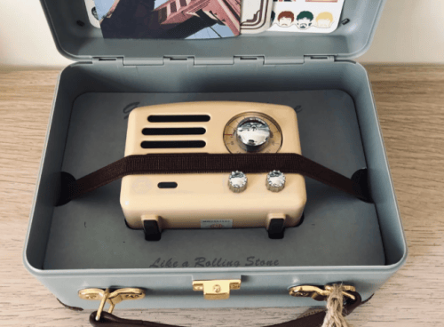 ▶复古设计,时尚与经典兼具:这款音箱的外观设计独具魅力,复古风格与现代感完美结合。金属材质和小巧的体积不仅让它看起来别致,特别适合那些热爱复古风格的用户。