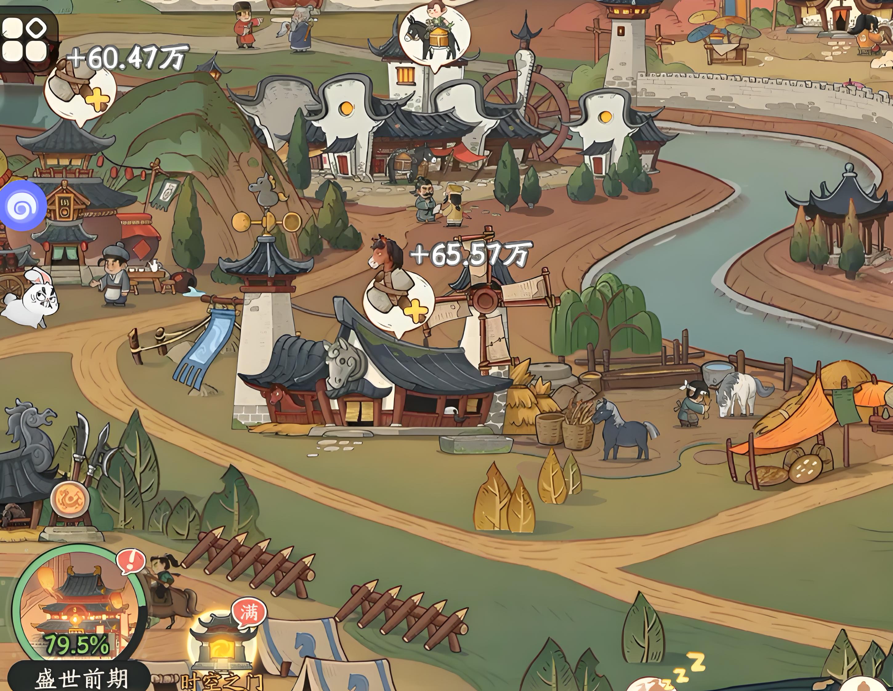 这个游戏的特征包含三个方面,一个生产模块,一个军营模块,一个人口模块,这个豪门宅院,还有泥瓦房,都是增加我们的人口的。它这左下角有个任务,随着任务的不断完成呢,也会让文明等级和繁荣程度大大提升。