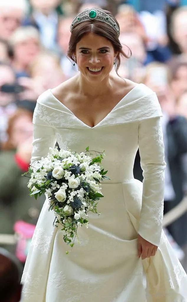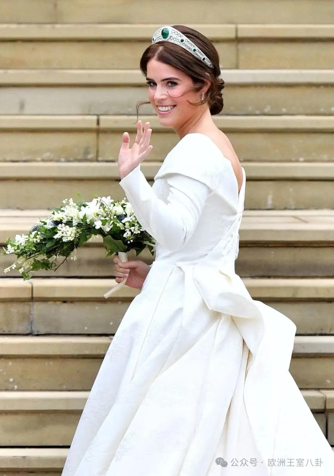 再回顾尤金妮的婚礼造型,发型、珠宝、婚纱各方面基本挑不出任何问题