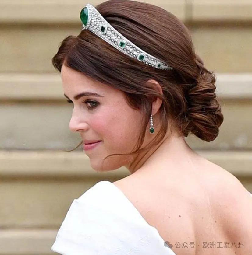 如大家所见,前阵子卡米拉不造为啥戴了库房中的祖母绿Kokoshnik王冠。只能说,更为约克尤金妮公主婚礼造型封神添了一把火