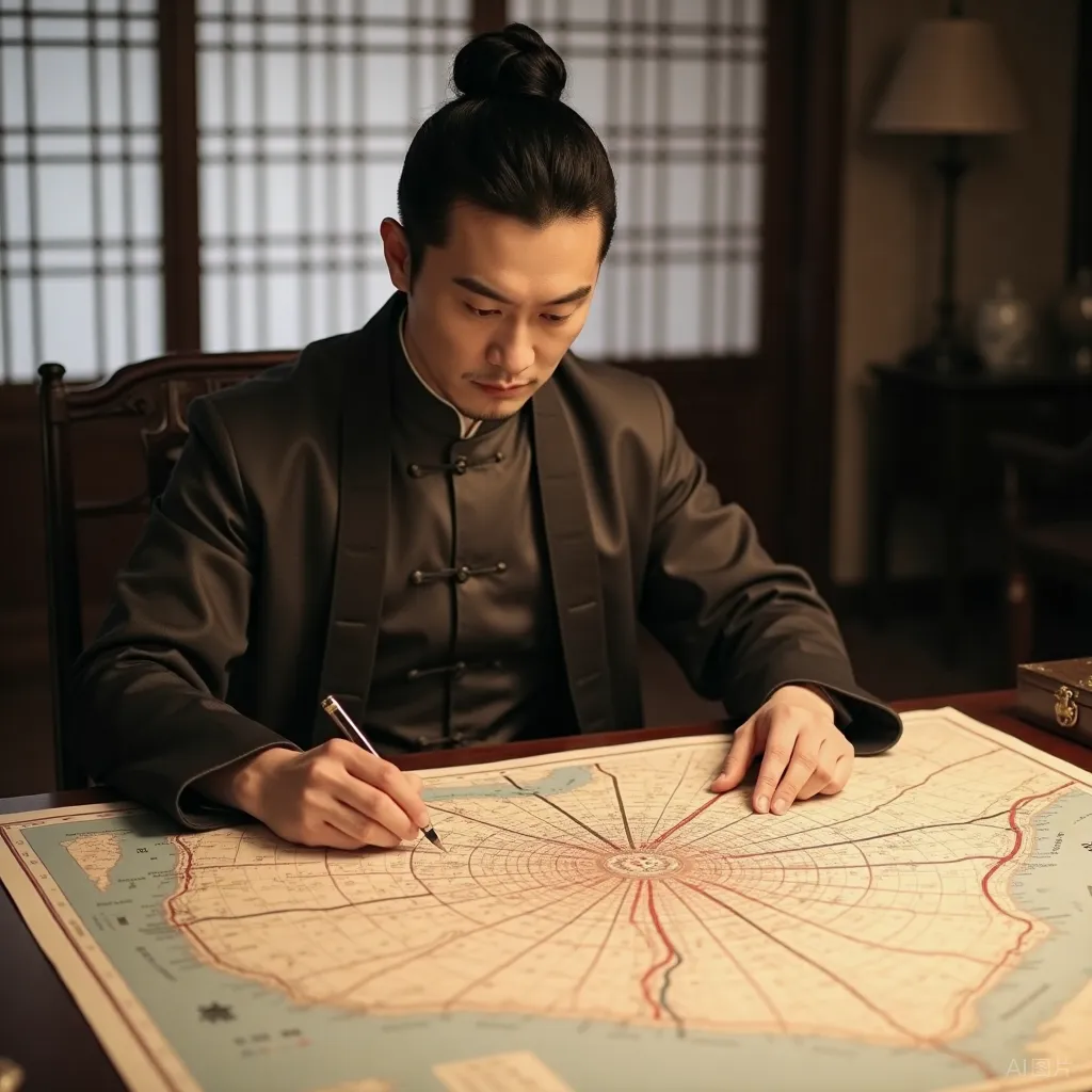 他走进西厢房——这是临时收拾出来的房间,里面只有一张桌子,两把椅子,墙上挂着一盏油灯。桌子上铺着那张省城地图。