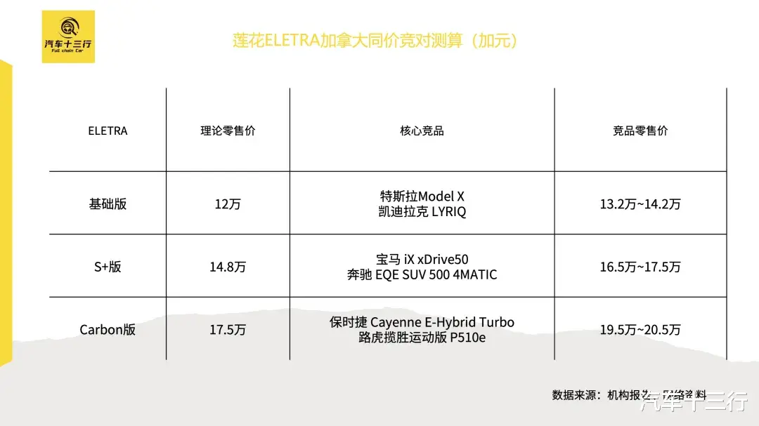 必须承认全球汽车工业的重心已经转移到中国市场。过去欧美国家认为可以通过构筑关税高墙,将中国技术隔离在主流市场之外,从而赢得转型的时间。但几年下来的结果是什么?墙内的欧美车企因为缺乏竞争而丧失了进化的动力,技术代差不仅没有缩小,反而被进一步拉大。对于加拿大而言,是守着欧美这滩注定干涸的死水等死,还是拥抱中国充满生机与技术红利的市场?答案不言而喻。在现有的贸易壁垒下,中国出口的电动车在北美的生存状态极其边缘化,以莲花为例, 2025年前三季度,莲花在整个北美市场的交付量仅为707辆, ELETRA 基础版、S+、Carbon三款主流配置车型售价分别为35.7万加元、45万加元、59.5万加元。