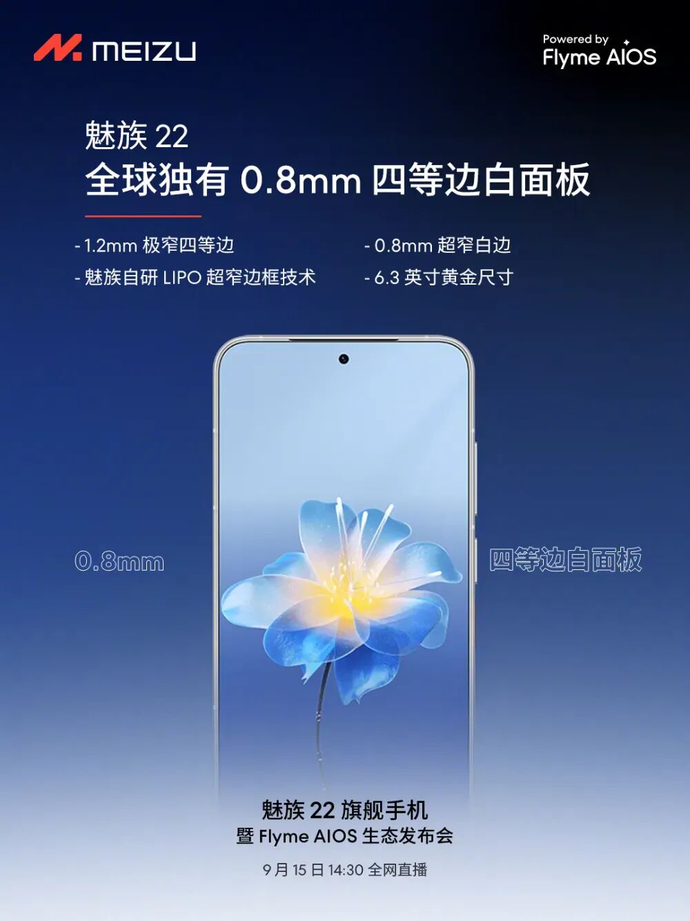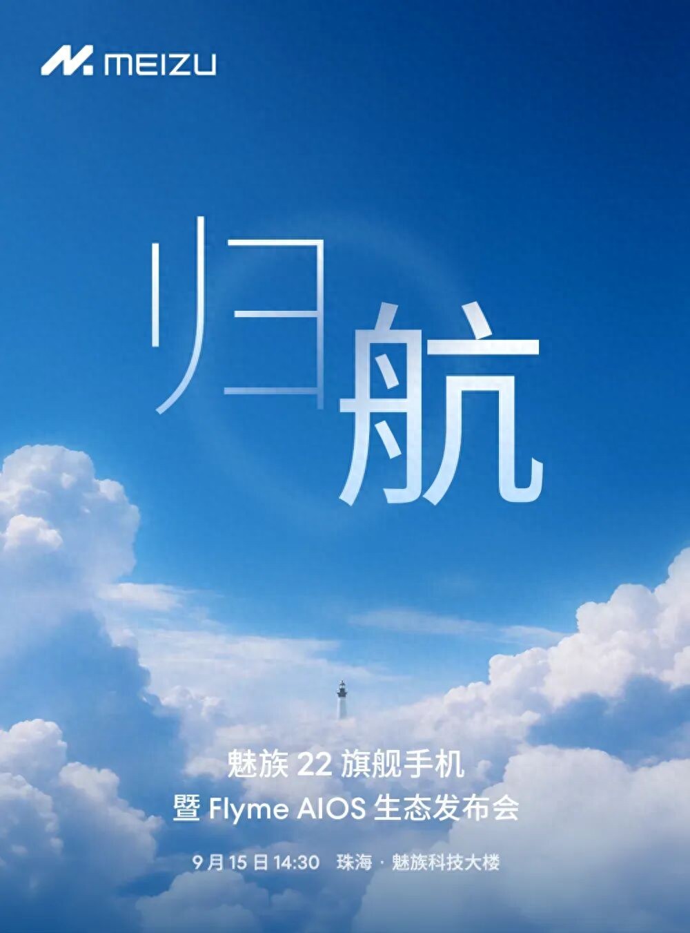 今天,魅族科技终于正式宣布了新品发布时间,即魅族22旗舰手机暨FlymeAIOS生态发布会将于9 月 15 日 14:30到来。