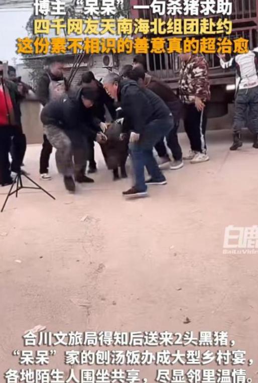 随着人群乌央乌央的赶来,呆呆“杀猪宴”彻底火出了圈。