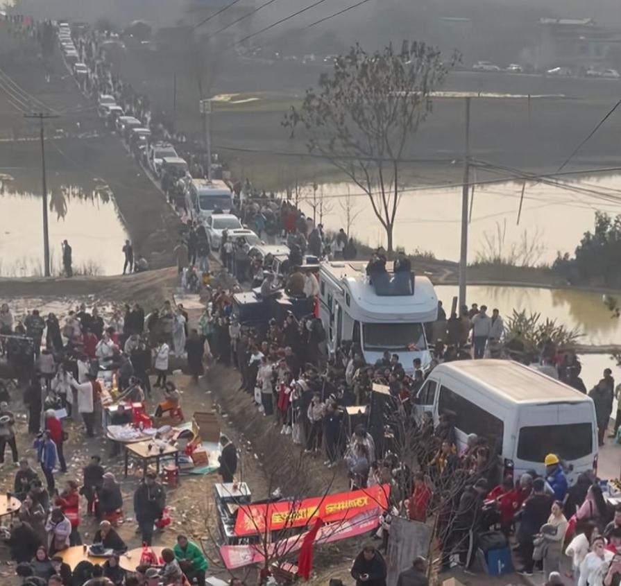 从村头到村尾,外地牌照的车排了3到5公里长,赶来的网友有重庆本地的,还有四川、广西、海南甚至更远地方的,两天下来总人数差不多有一万,最高峰时现场同时站着3000多人。
