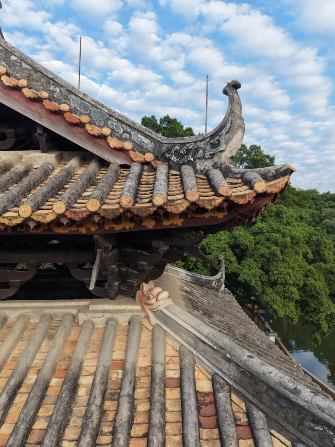 一座小小的乡亭,传承至今520年,一座小小的乡亭,成为第一批广东省文物保护单位,整个大湾区都罕见的明清木构古亭,也可以毫不夸张地说,这是整个大湾区最好看的一座古亭,展现了中国古建传统之美。北涌亭就位于沿江东路旁,每天来来往往的车辆和行人很多,但极少会有人为其驻足,可能绝大多数人并不知道这座不起眼凉亭跨越了明、清、民国和中华人民共和国四个时代,至今已有500多年,当然很多本地人也早已见怪不怪。不过当你走遍大湾区,你会发现还真找不到一座北涌亭更古老,更漂亮的传统木构凉亭。北涌亭沿江两岸还被打造成了一个叫做“梦里水乡”的江畔公园,有时间也可以走走逛逛。