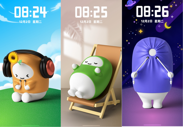 而且「Q弹情绪向右滑」主题还有很多好玩的地方,比如向右滑动就可以把屏幕上这个小家伙的耳机拉长弹回去,啪的一下又可爱又解压。而且还能切换不同的颜色和形象,这下每次点开屏幕的时候都有不一样的Q弹的小家伙在上面等着我点点绰绰,让我的心情都平静了不少。