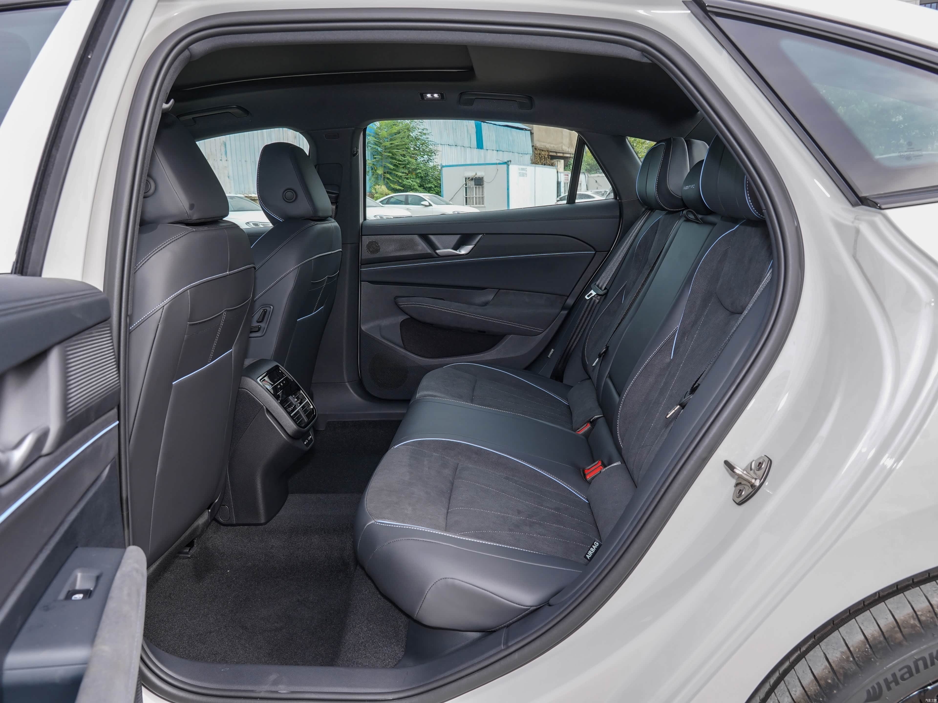 后排的人膝盖距离前排座椅,有两拳半的距离,1米8的大高个,翘个二郎腿也能实现。