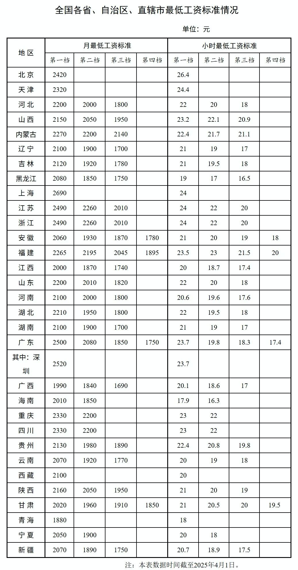 最低工资标准又提高了!2025年4月3日,人力资源和社会保障部发布了全国各省、自治区、直辖市最低工资标准情况。