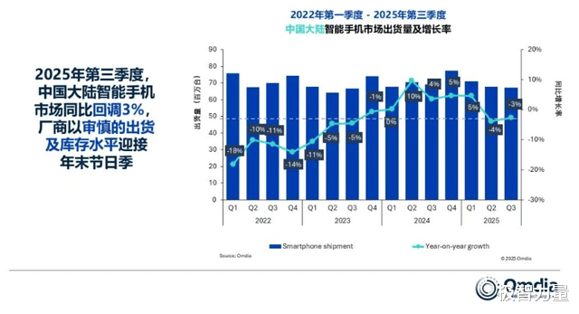 10月已经过半,大部分的手机厂商均发布了旗下的新品手机。其中,像几大头部品牌,甚至主品牌和子品牌仅隔了几天,就接连发布新品。手机厂商们之所以如此积极,也和目前手机市场的反应有关。根据知名调研机构Omdia的调研数据,在2025年第三季度,国内手机市场出货量下降3%。