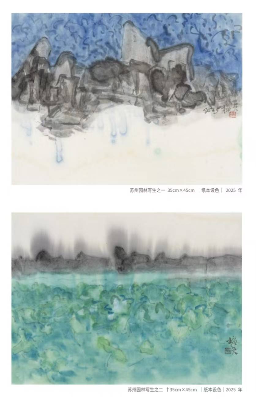 此时她的心境并不预设,那种自然的写意,是在传统笔墨的流淌中与道相合,只有“唯道集虚”,保持内心的虚空、澄静,摒弃杂念、欲望与主观成见,才能真正保持心底的自由,摆脱了执念,才能与“道”相通,达到超然物外的境界。只有“澄明本心”,艺术才会呈现出高度自由、元气淋漓的语言气息。