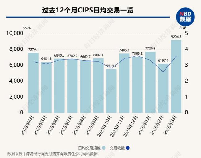 人民币跨境支付系统(CIPS)在2026年4月2日的单日交易额达到1.22万亿元人民币,创下近期新高,