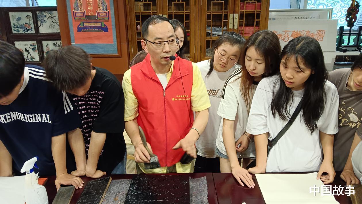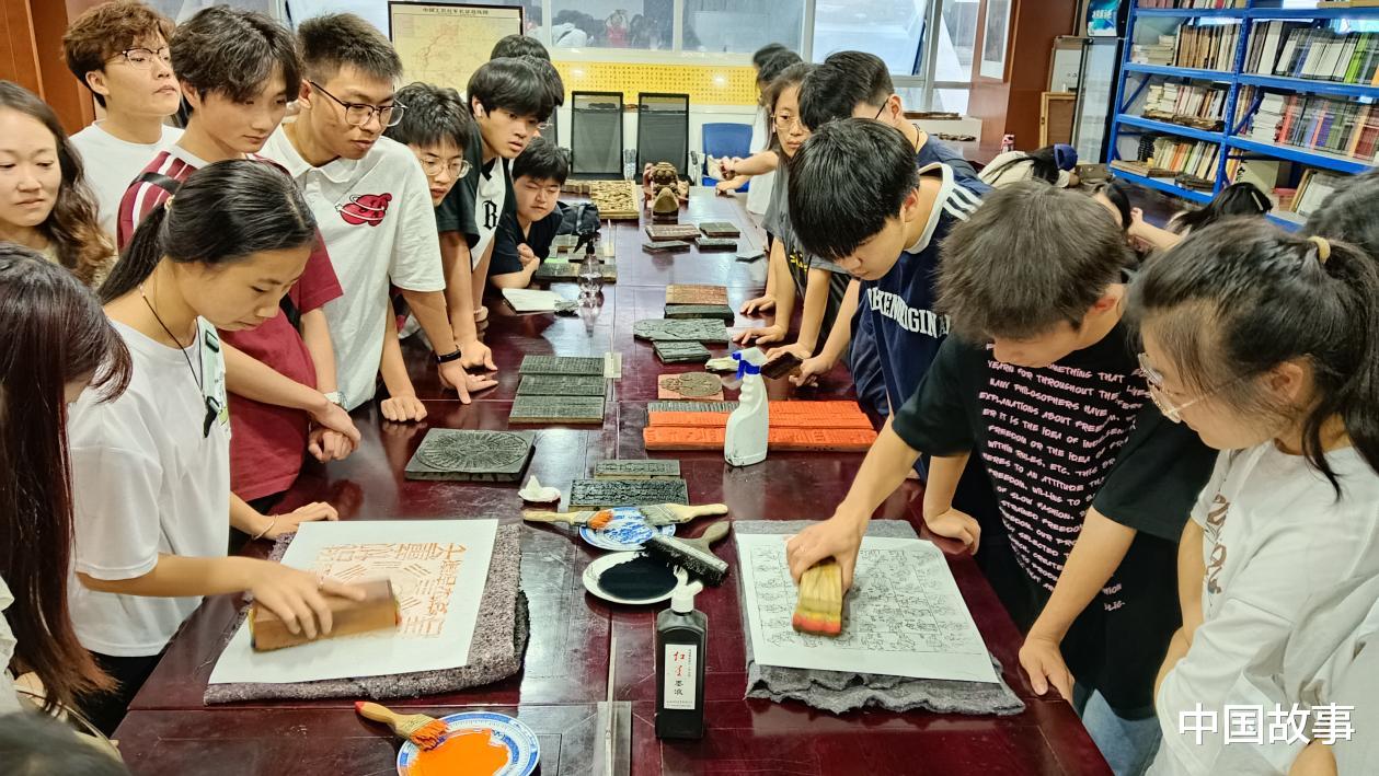 随后,活动的重头戏——非遗技艺木版水印体验环节正式拉开帷幕。在郑华馆长的亲自指导下,同学们亲手参与了木版水印的制作全过程。从精心挑选材料、细致雕刻版模,到小心翼翼地进行印刷,每一个步骤都充满了挑战与乐趣。同学们在实践中不仅学到了传统技艺的精髓,更深刻感受到了匠人精神的伟大与传统文化的独特魅力。