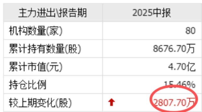 机构动态:二季度持股机构数80家,较一季度增加73家,合计持股8676我那股,加仓2807万股。