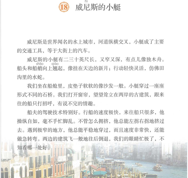 《威尼斯的小艇》主要讲述这篇课文通过介绍威尼斯小艇的样子、船夫驾驶小艇的高超技术以及小艇的重要作用,为我们展示了威尼斯这座水上名城特有的风光。