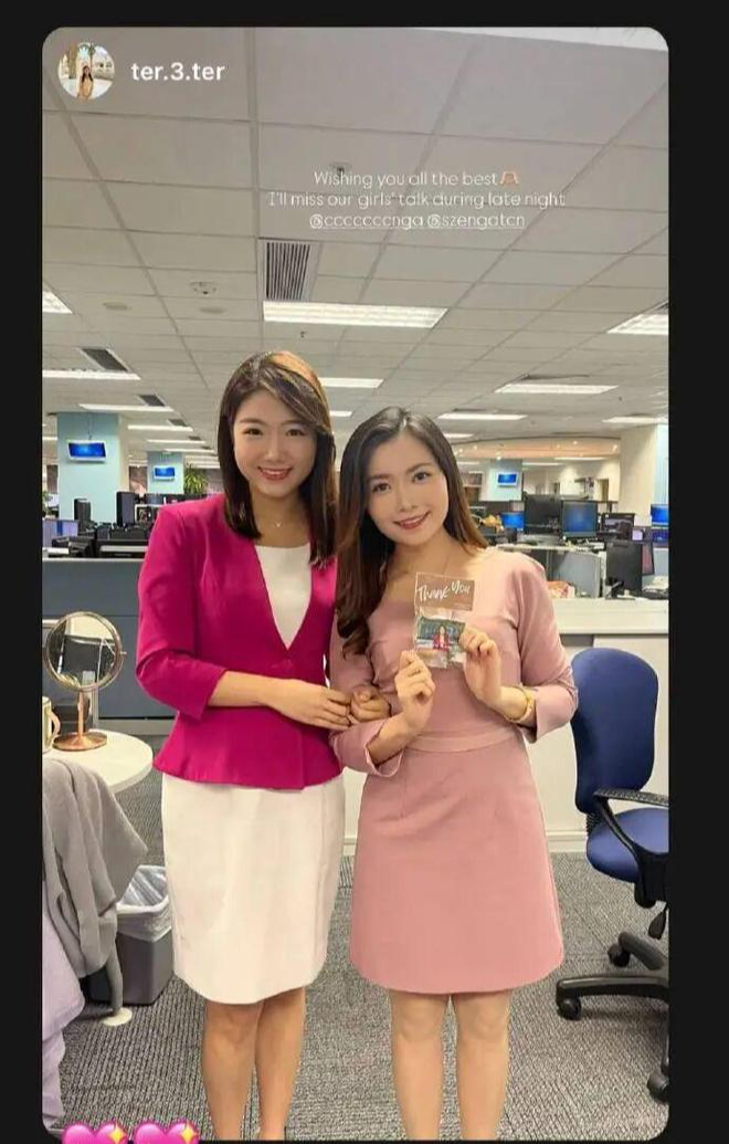谭诗雅感谢TVB助圆主播梦谭诗雅在IG上分享了多张在TVB新闻部拍摄的纪念照,包括在主播台、新闻部大楼外等地留影,流露出对公司和岗位的依依不舍。她发文感谢TVB给予的机会,让她圆了主播梦:“感恩这里成就了我的梦想,感谢在TVB新闻得到的机会。”