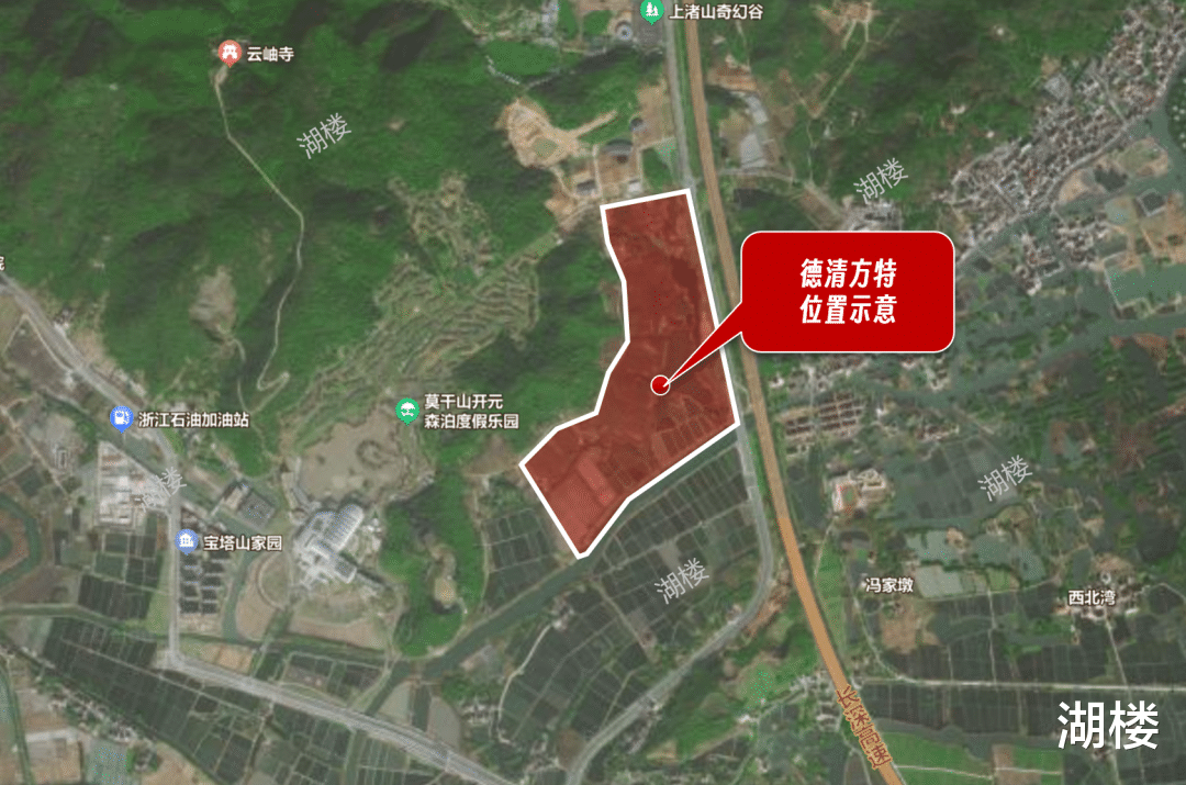方特项目位于德清下渚湖街道,莫干山森泊度假乐园东北侧,北临青山坞路,东侧为上渚山路。